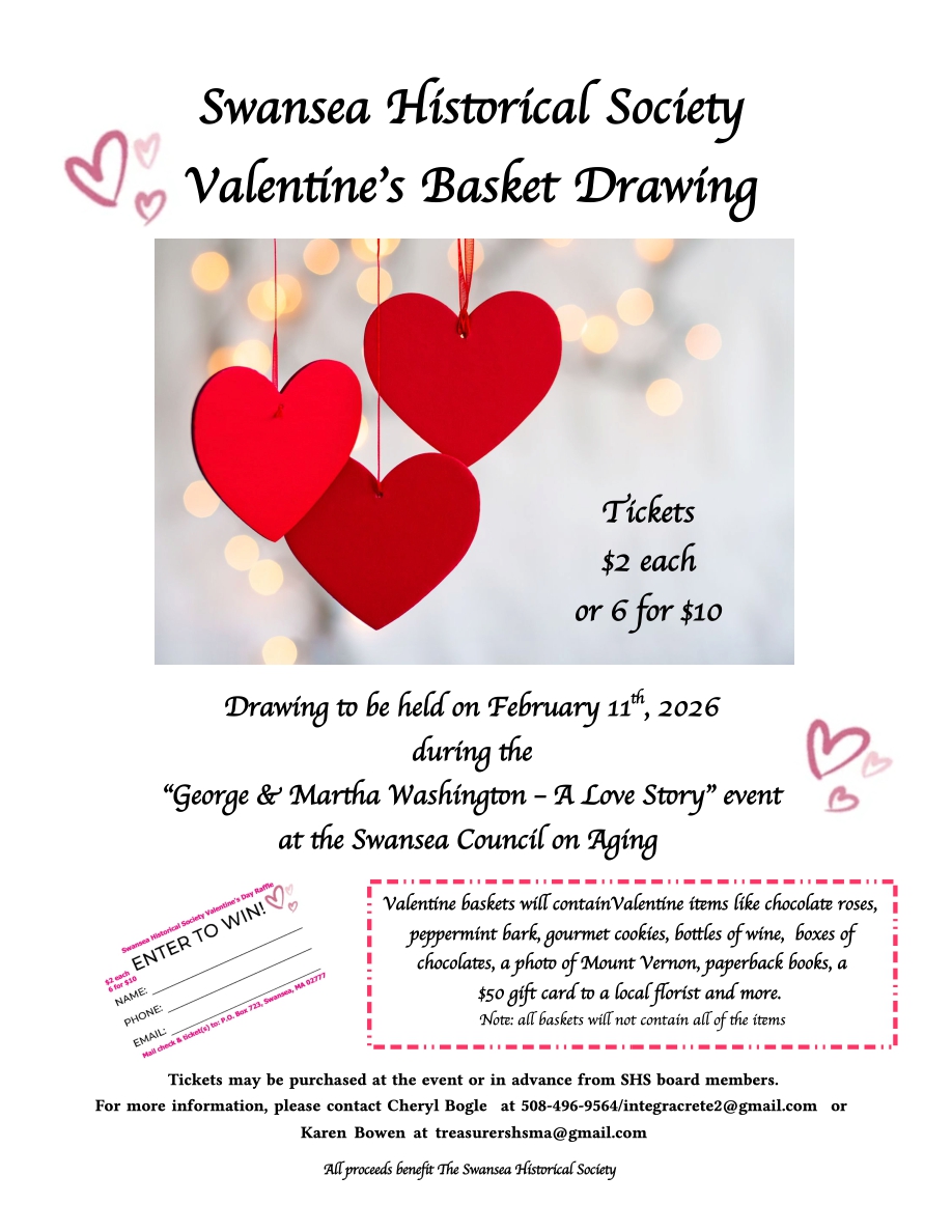 On Sunday, December 12, 2021, the Swansea Historical Society celebrated its 80th Anniversary at the Swansea Community Center. As part of the celebration, we had a Homegrown Artifact Event and a Holiday Fundraiser which consisted of 27 beautiful holiday prize baskets and 2 door prizes. Thank you for all your support and congratulations to our basket winners!