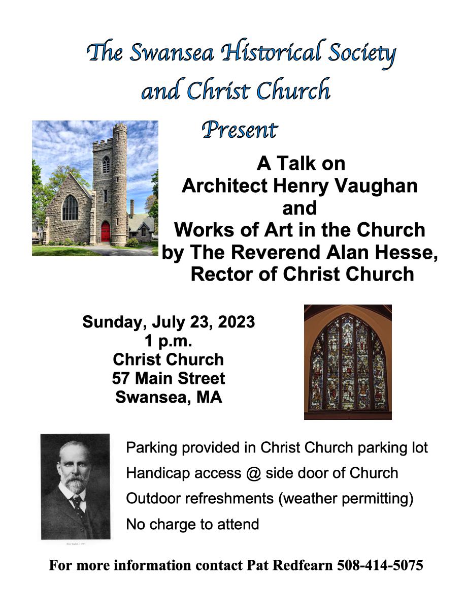 NEW DATE! Sunday, July 23, 2023 1:00 p.m. Christ Church 57 Main St., Swansea, MA