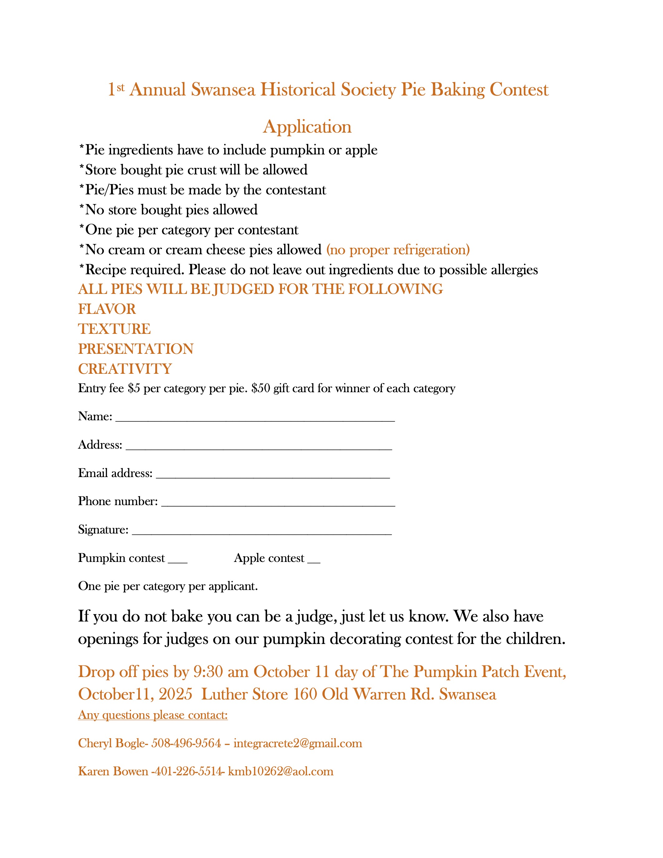 Please complete the form at the bottom of the flier, detach and include with your pumpkin submission.