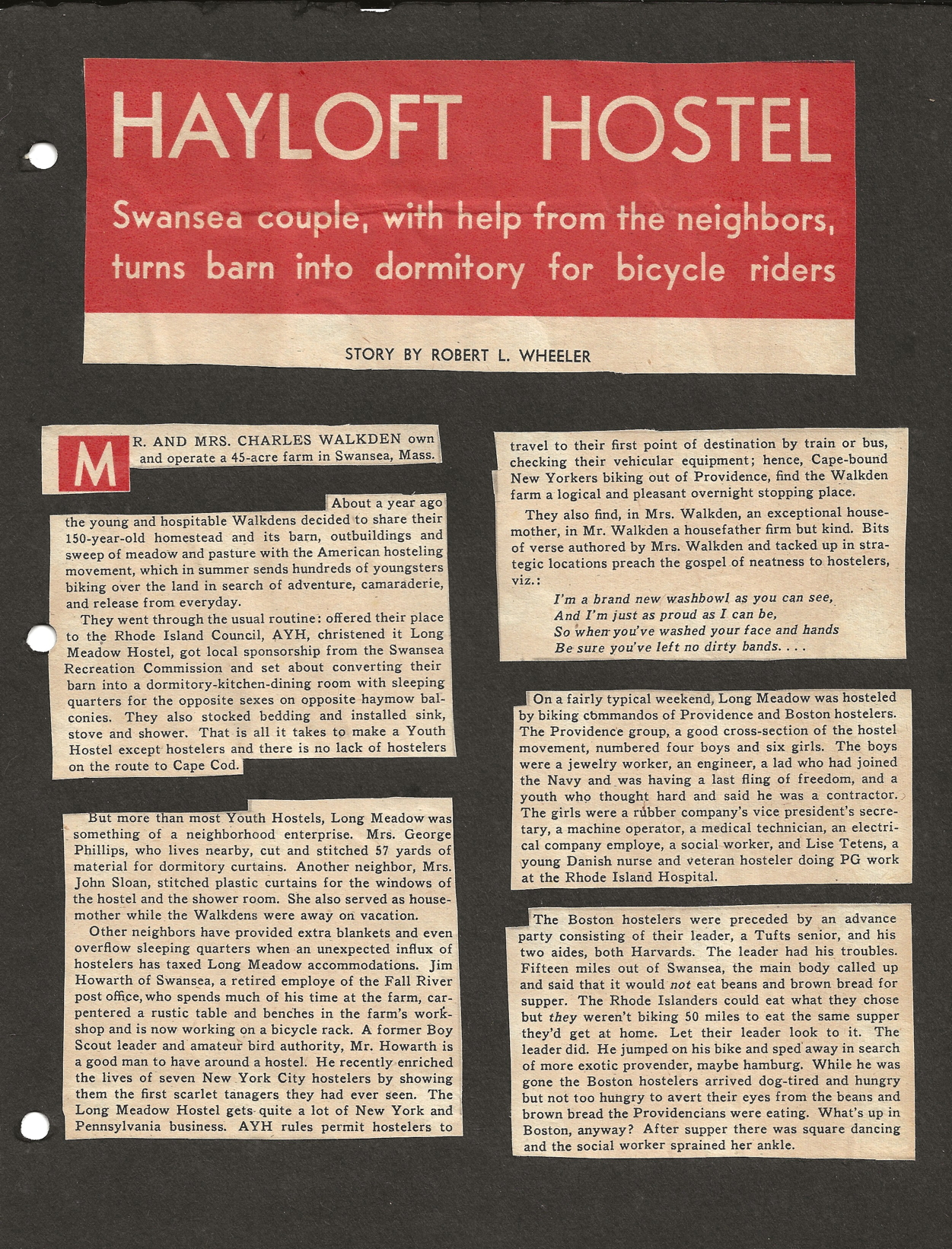 Headlines stated "Swansea Barn Becomes a Popular Youth Hostel."
